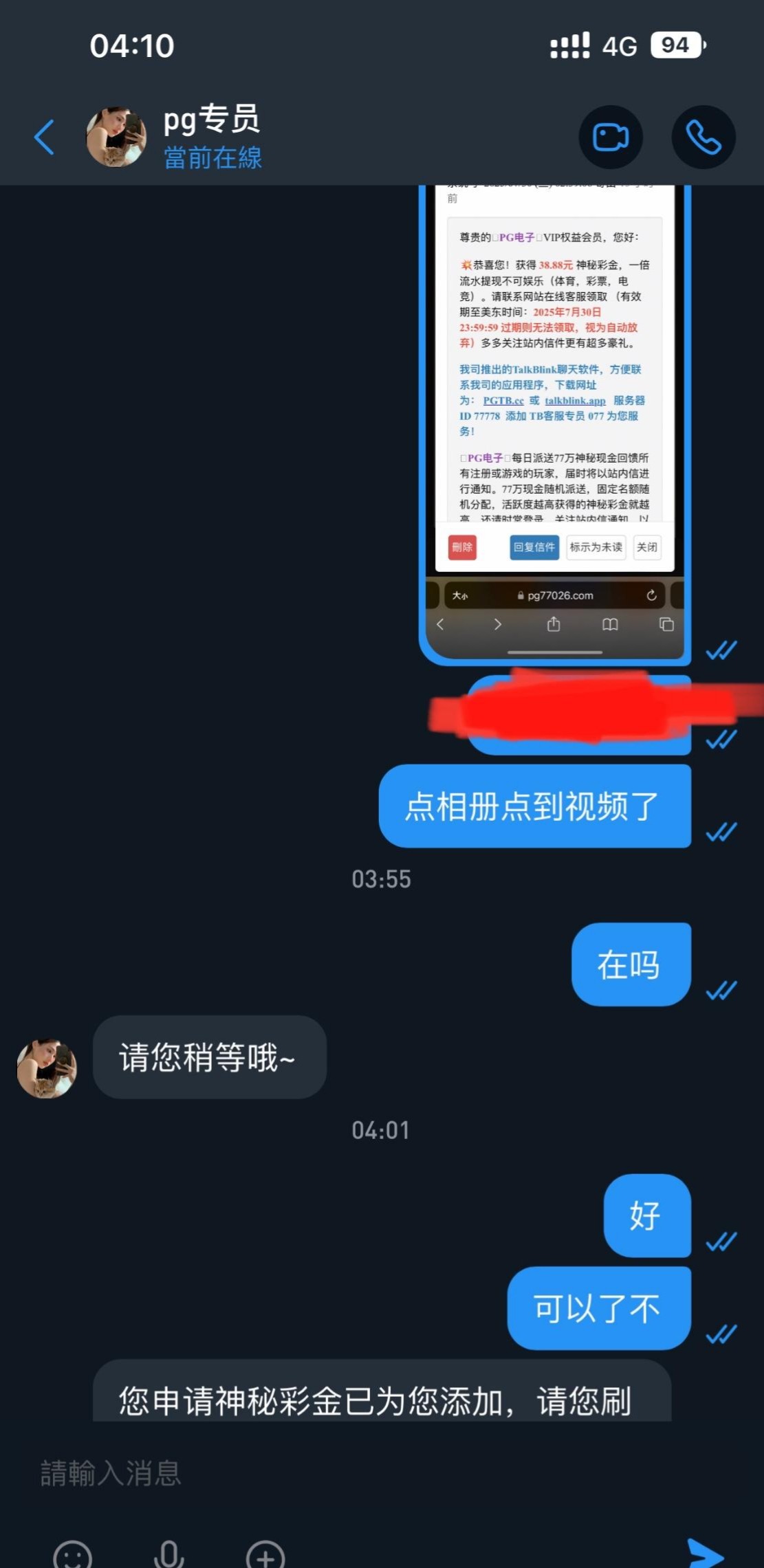 有号的上号看看站内信,有神秘彩金。没有就无视,碰瓷碰不到。链接0870.com或pg77.cc。第一次发帖,各位老哥別中出我