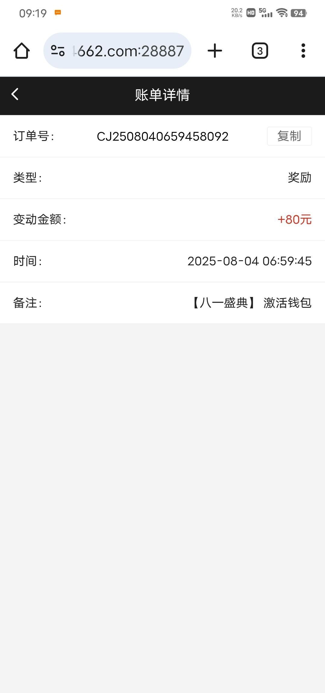 【662】八一彩金派发