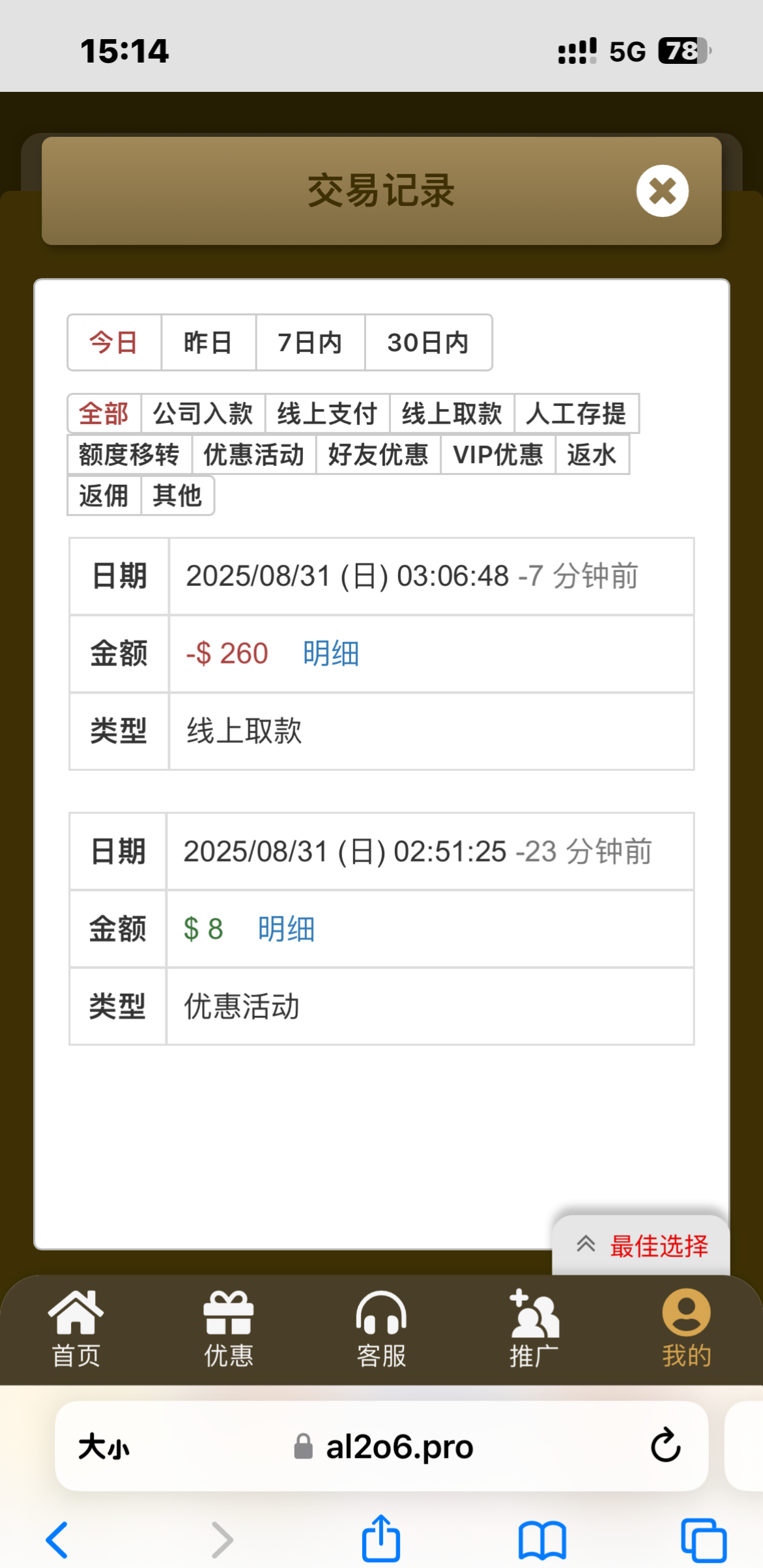 从来没有充值过 我是接到电话去和客服申请的 老哥们自测地址5325.com