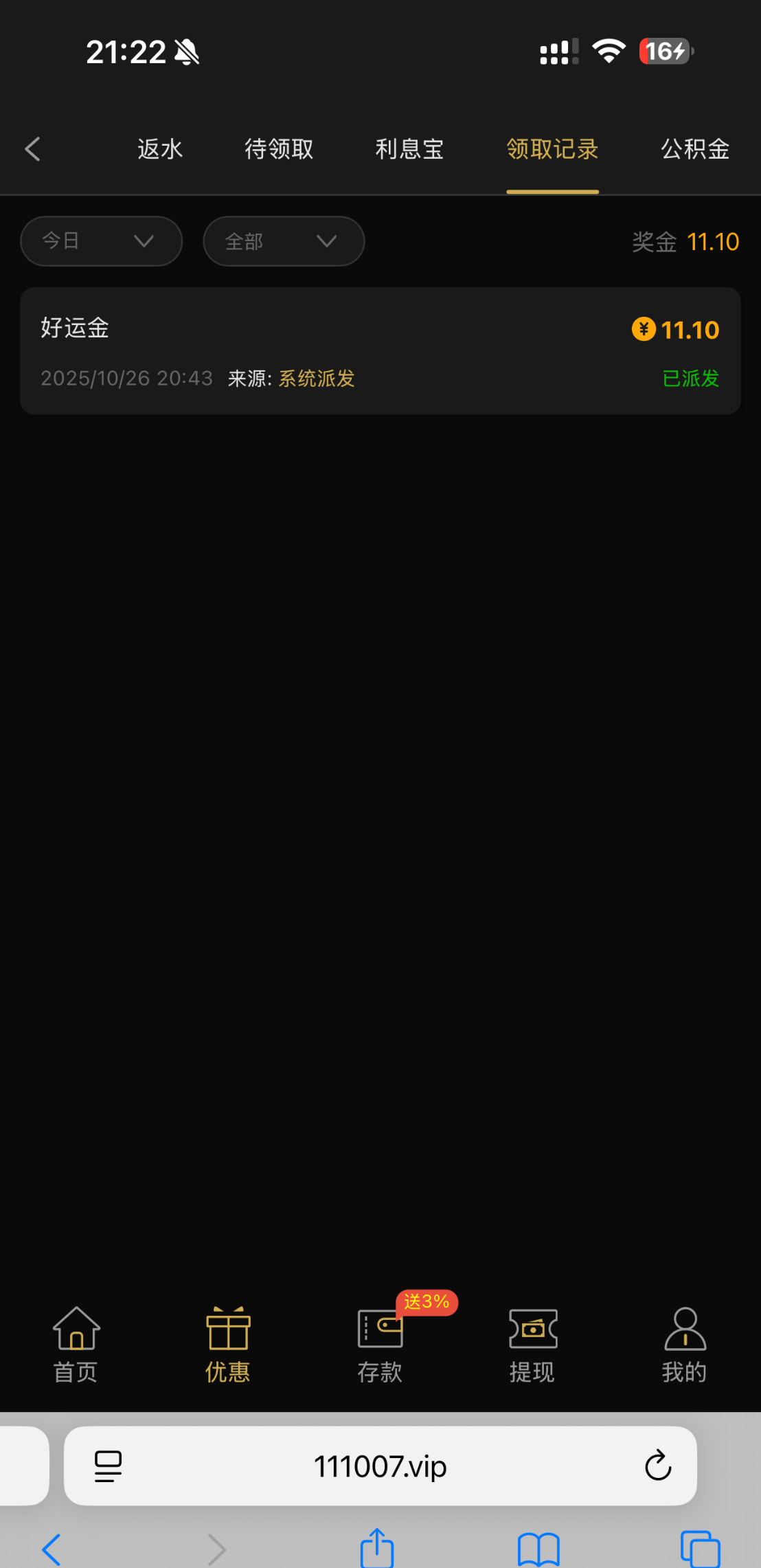 接到电话说账户有彩金,然后登录进去发现有好运金 我没打出来,111.vip