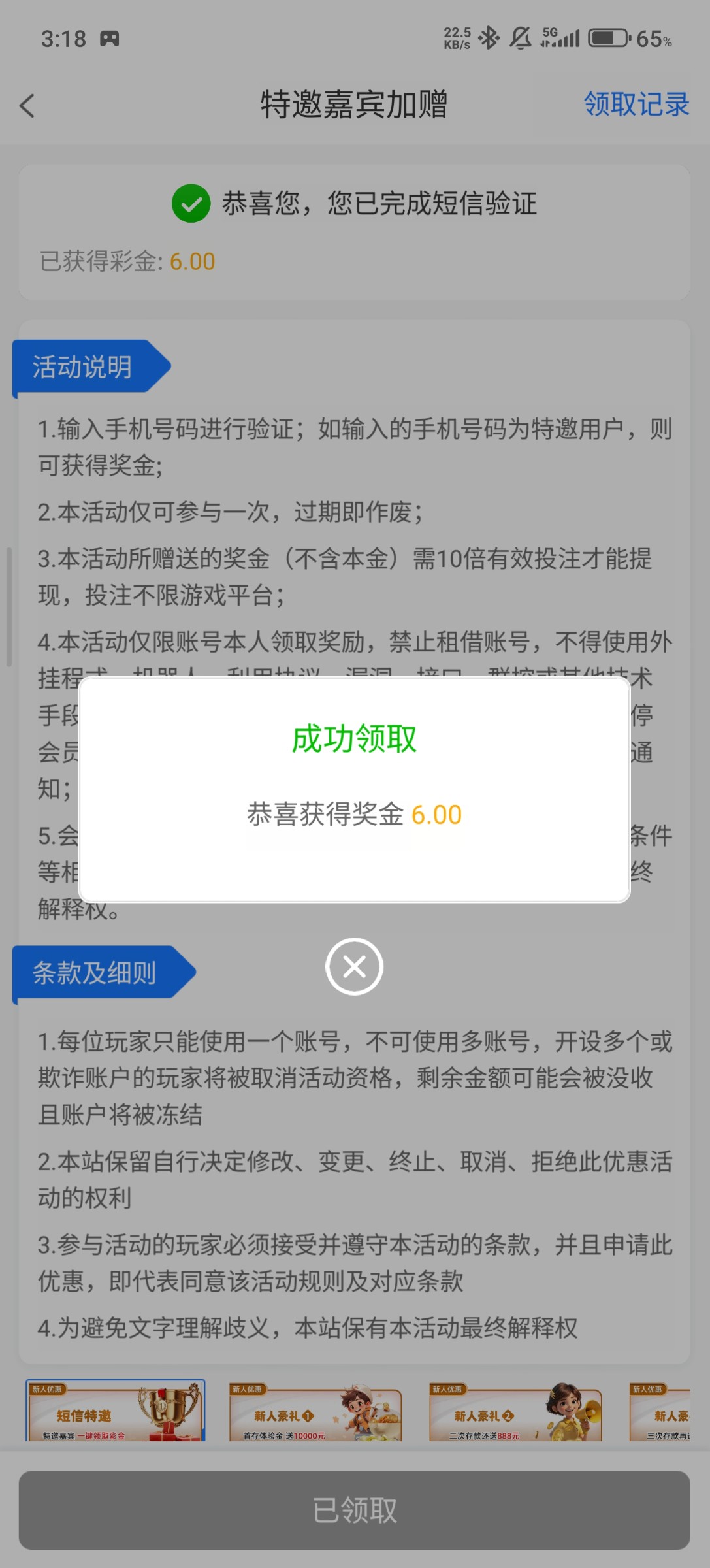 短信特邀送6,你们可以去试试是不是特邀