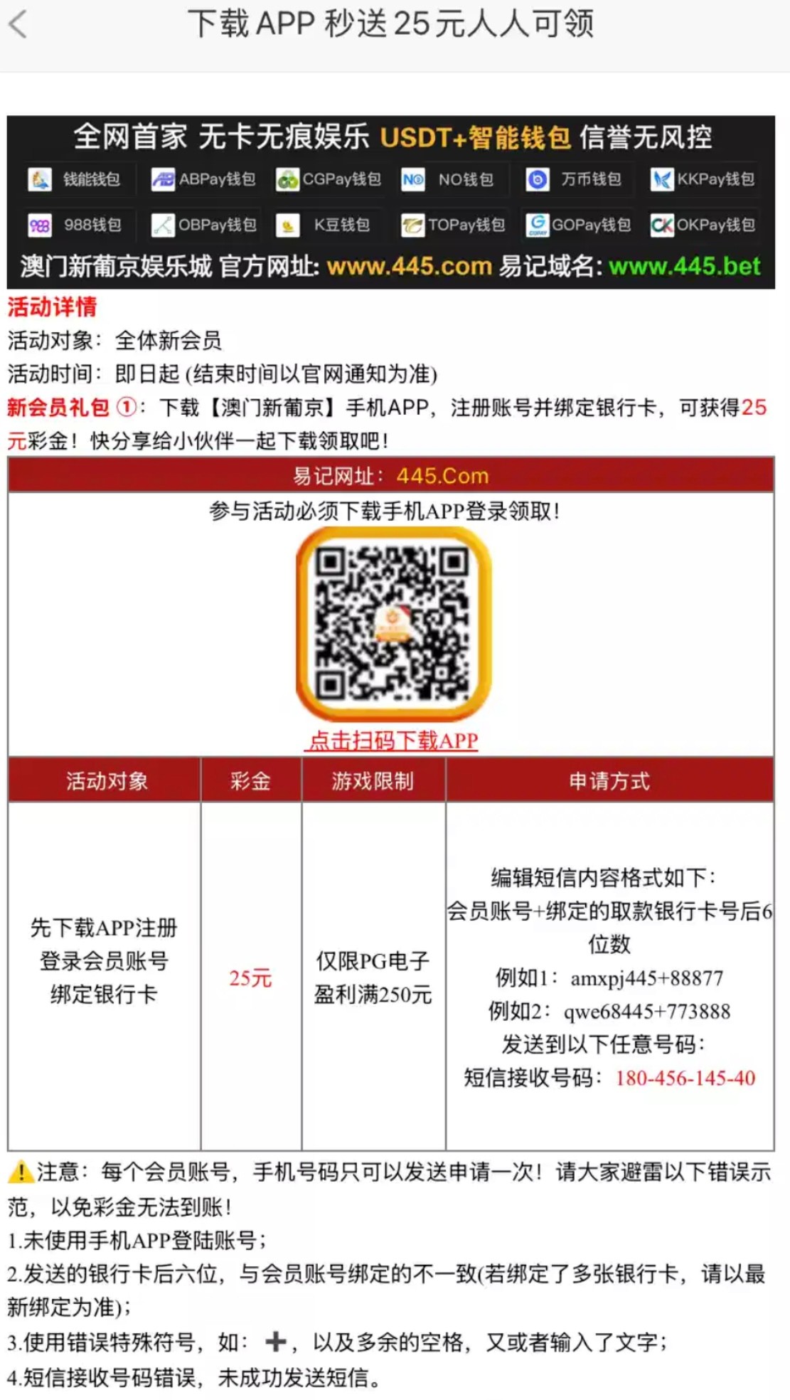 发送短信送25国内号码,没有到账找客服补