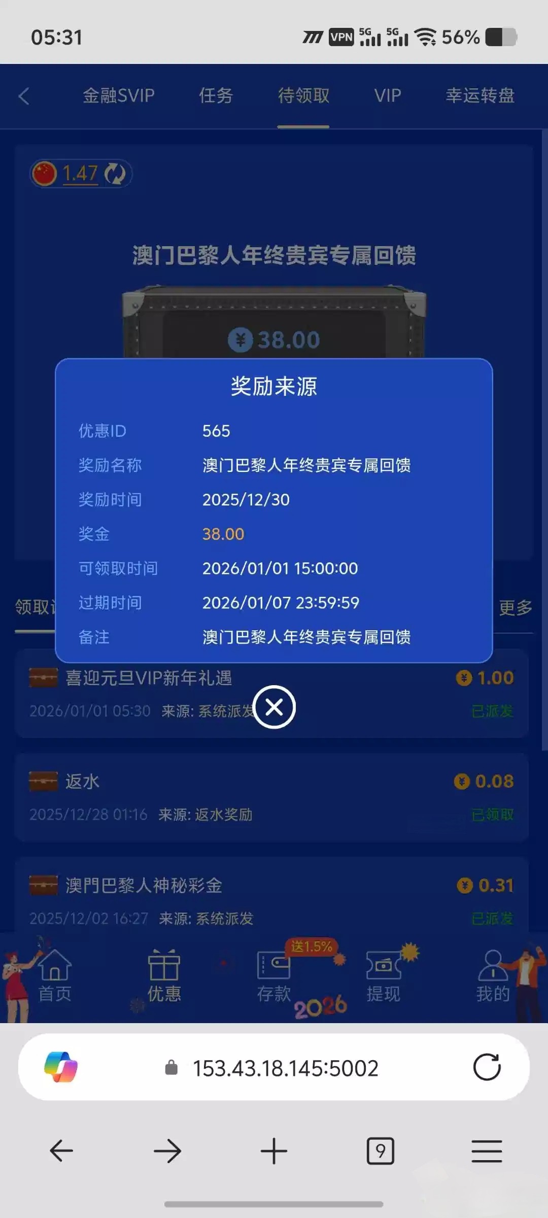 不知道这啥彩金,没找到对应彩金的活动,下午才能领取,有号的去看看,说不准有