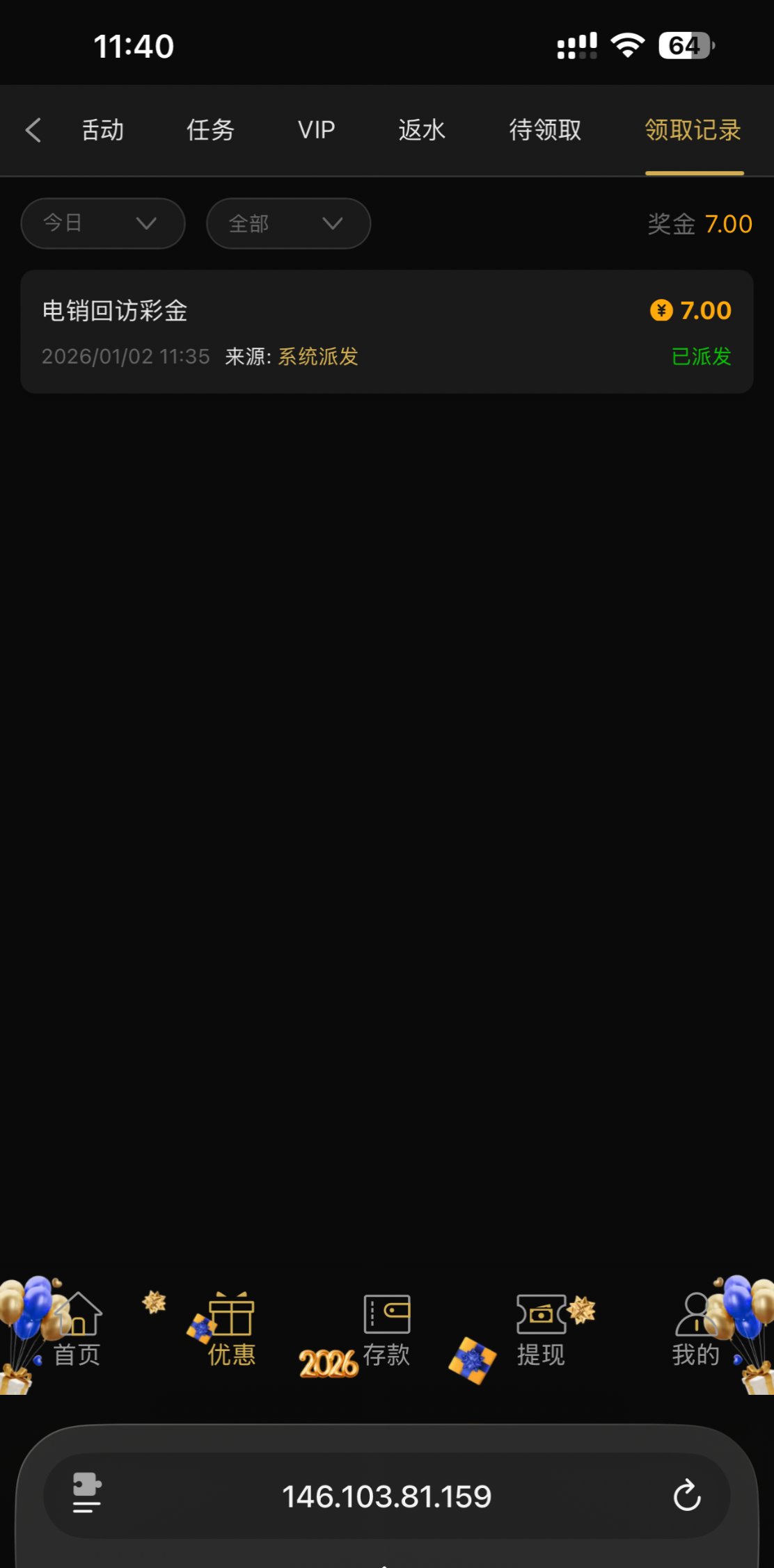 昨天领不到的那个26,现在登录看一下有没有回访彩金,登录就直接有