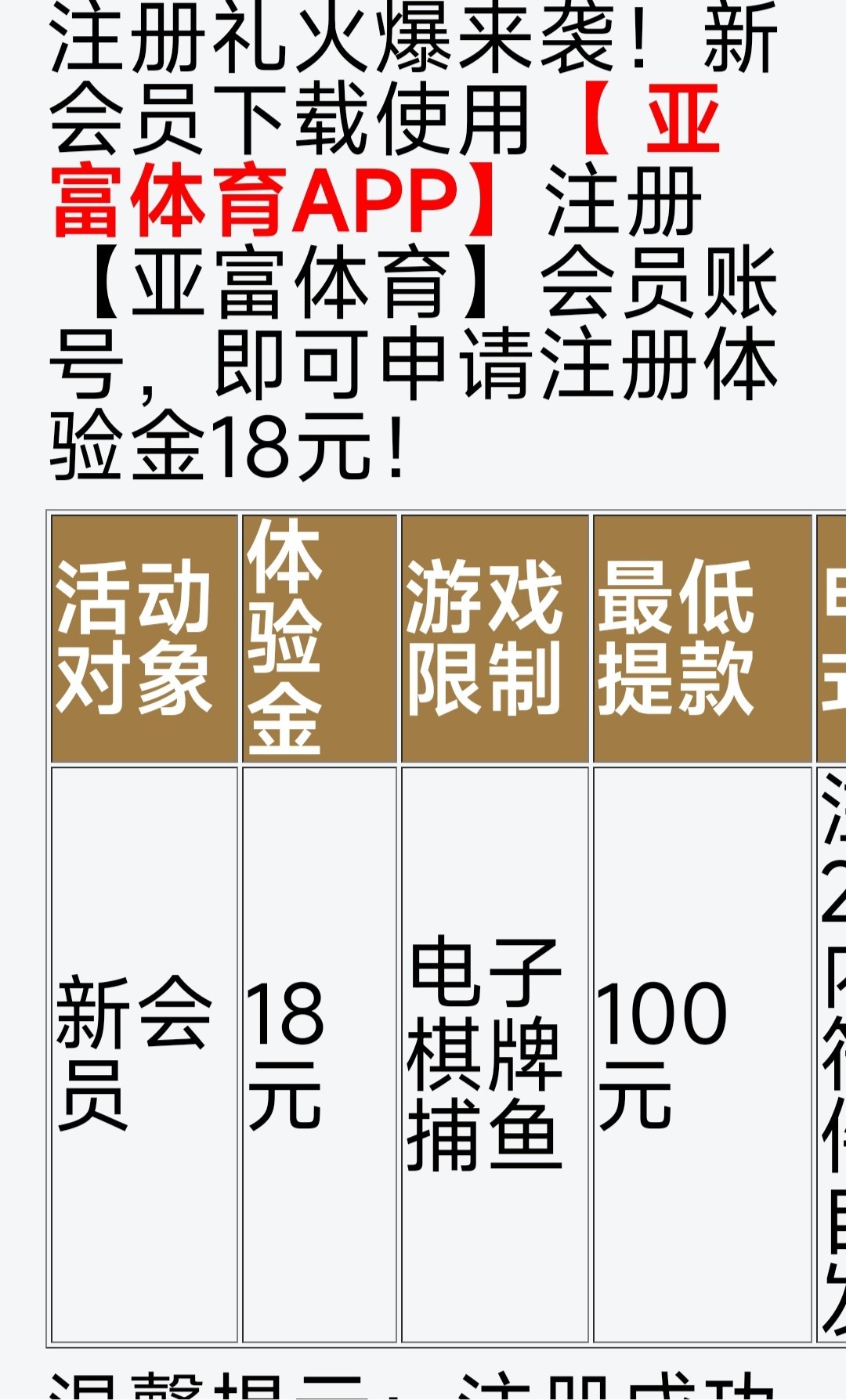 新用户注册完善信息一小时内送18彩金,限制看活动。